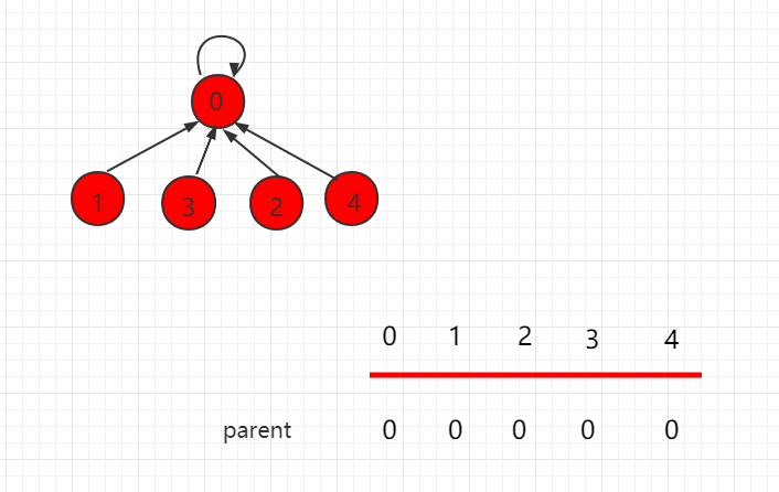 // 初始化, 每一个parent[i]指向自己, 表示每一个元素自己自成一个集合